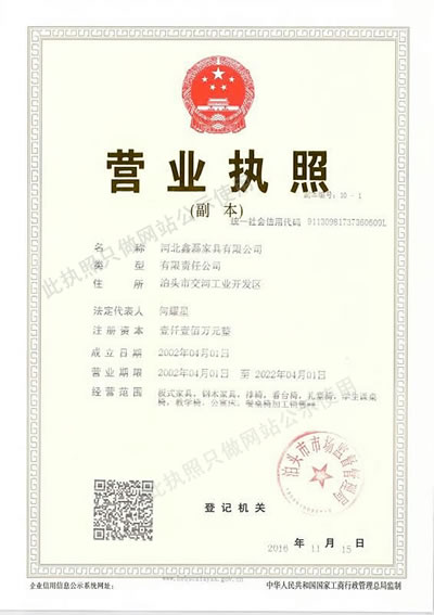 河北鑫磊家具有限公司(教學設備生產廠)位于中國鑄造之鄉(xiāng)——河北省泊頭市,是生產教學設備的綜合企業(yè),被列為教委定點生產廠家。公司主要生產上下床、中小學課桌椅、電腦桌椅、軟排椅、階梯排椅、辦公椅及課桌椅配件等教學設備家具。 公司為股份制企業(yè),歷經十多年的艱苦奮斗,具有雄厚的人力資源。